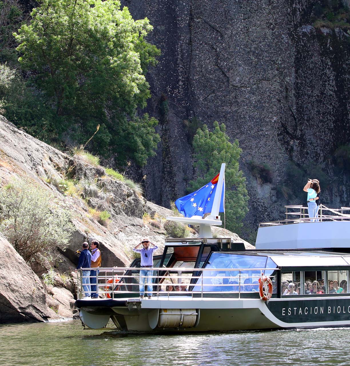 The Arribes del Duero Environmental Cruise travels along the spectacular vertical cliffs of the Douro International, on the border between Zamora (Spain) and Miranda do Douro (Portugal). During the trip, Biological Station technicians interpret the ethnographic resources, fauna, flora, and geology of the park's spectacular cliffs. Upon return to the International Biological Station, the cruise includes a tasting of fortified port wines, a visit to the Douro Valley Shop, and facilities with otters and other species from the EBI Animal Therapy Program.