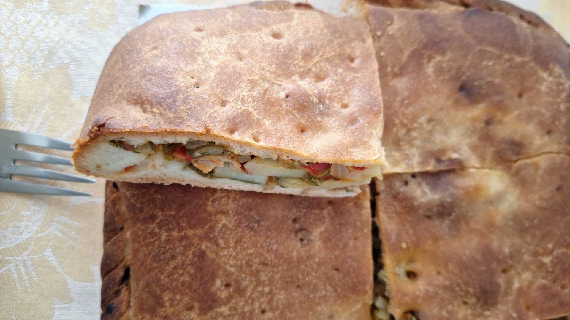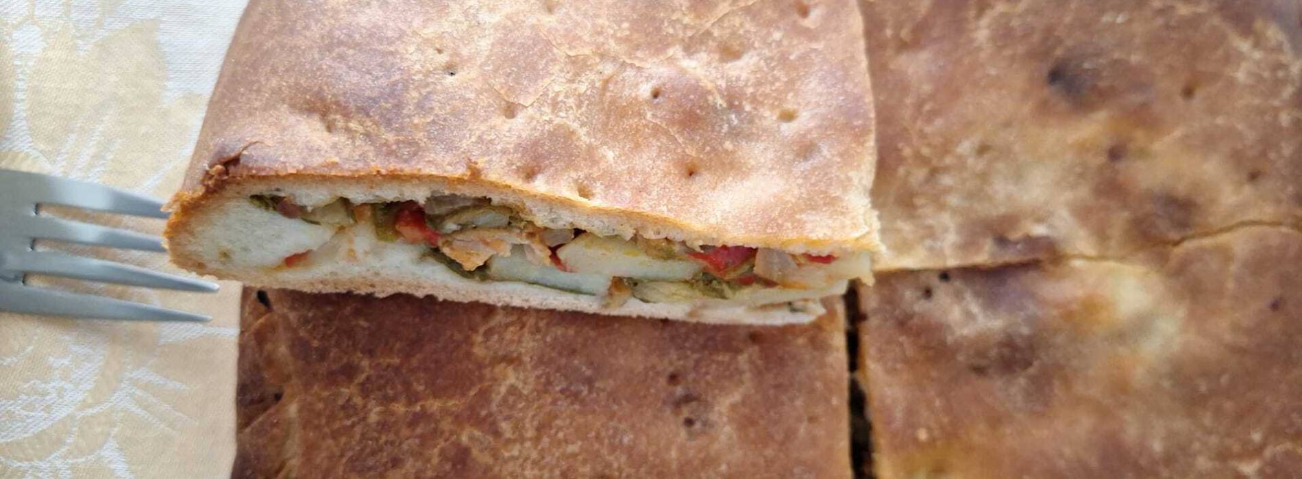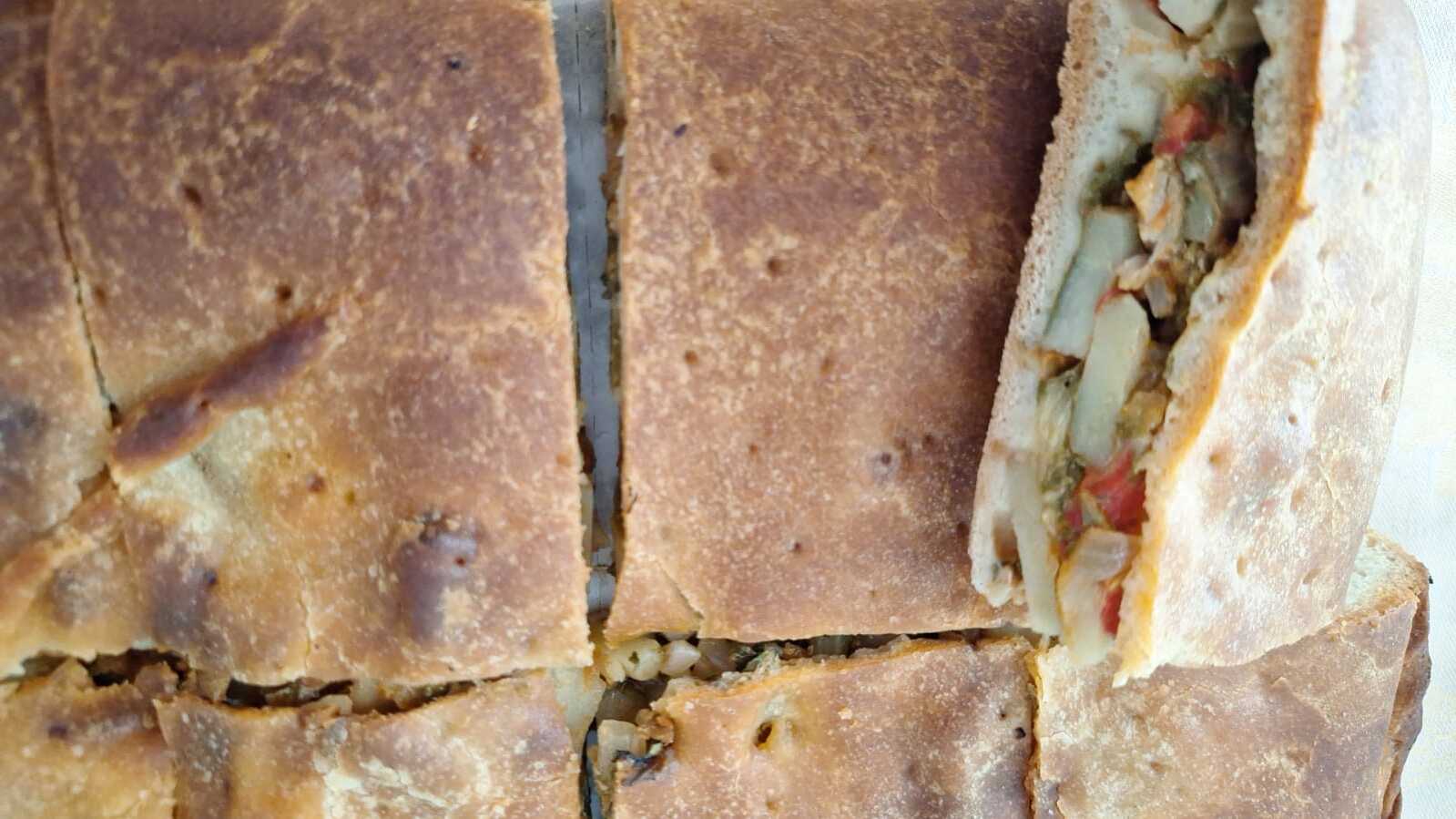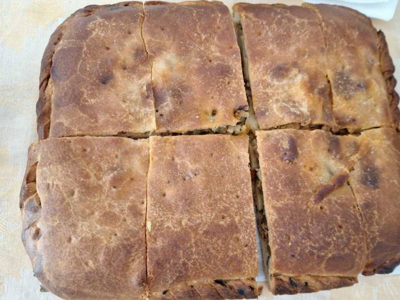 Once the sautéing is finished, remove some of the excess fat and reserve the rest of the ingredients, taking the opportunity to bone the meat. Next, fry the sliced potatoes a little in new oil. Then, put the chopped chard leaves and potatoes in the leftover fat from sautéing the meat. When the chard looks done, remove everything. With half of the dough, line a special greased empanada mold, or use parchment paper. Place the sautéed chard and potatoes on the stretched dough and place the rest of the filling on top. Cover it with the remaining sheet of dough, bring it together and braid the edges a little with your fingers, as if it were a cord. It is placed in the oven, which we have previously heated to 200 ºC. We keep an eye on the dough and when it starts to want to brown a little (about 15 minutes), we will lower the temperature to 180 ºC and take the opportunity to paint the surface with an oil brush. Leave it in the oven for about 30 more minutes. We turn off the oven and keep the empanda inside for another 10 minutes. It is removed from the oven (total baking time 55-60 minutes) and allowed to lose temperature so that it can be consumed warm.