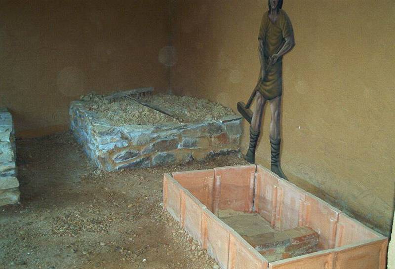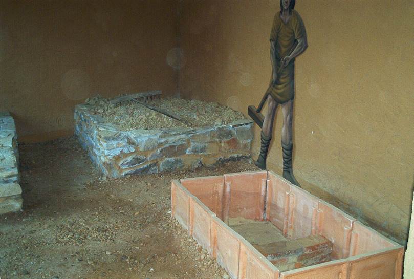 从房间进入的外部空间中,有不同的建筑,再现了定居点生活期间的环境。一方面,重建了第一铁器时代居住的房屋和小祭坛,后来继续重建了大部分罗马陶器建筑群,建筑分为三个房间,可以分析建筑材料制造过程中遵循的工艺。游览以挖掘出的两个陶器炉结束,整个行程通过简单的海报提供附加信息。
