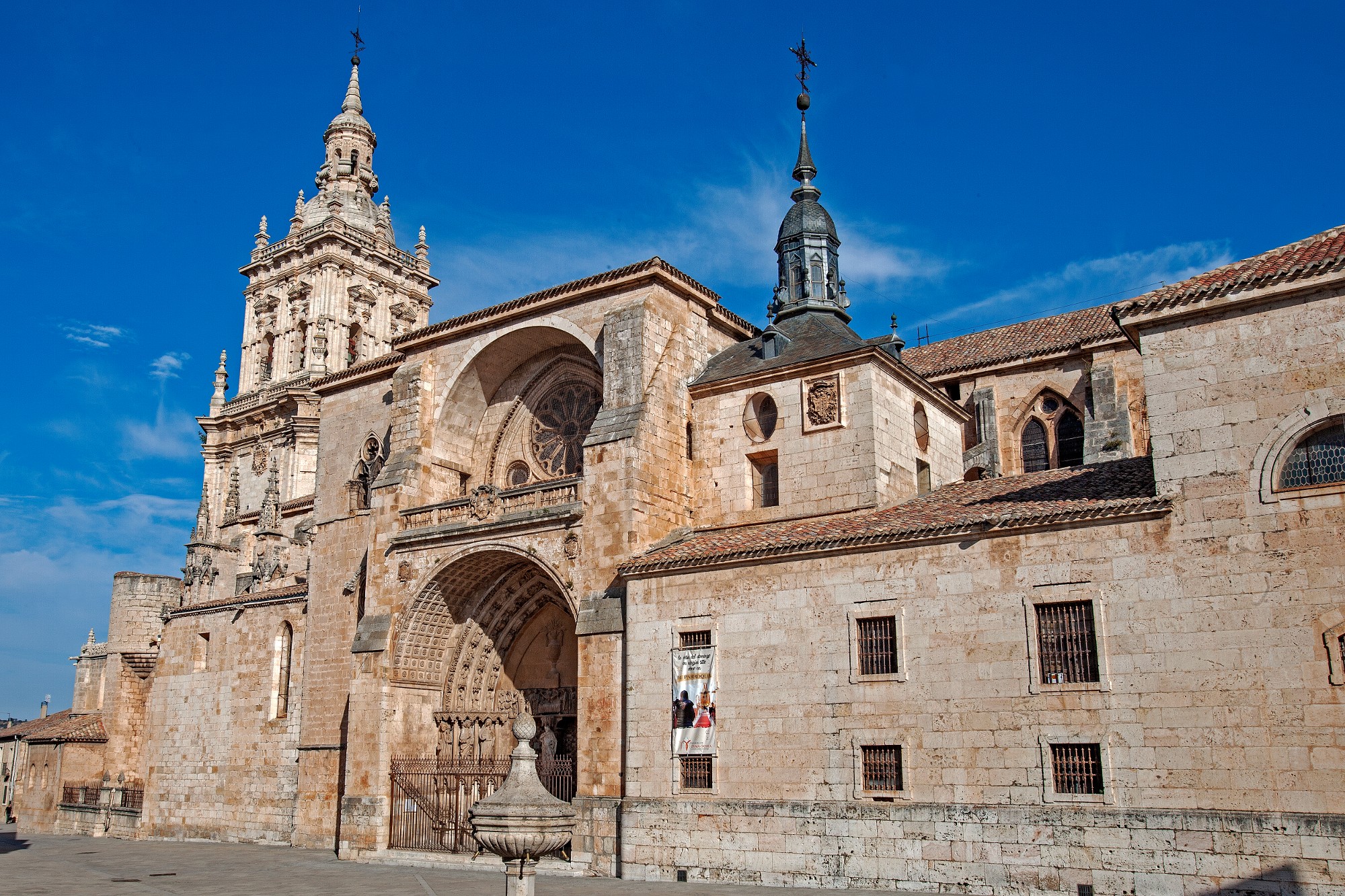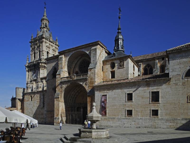 L'imagerie des façades et le symbolisme de tous les recoins de cette immense église sont d'une grande richesse et réunissent différents courants et cultures. Le primitif temple roman, commencé par San Pedro de Osma, a été remplacé par l'actuel édifice gothique dont la construction a débuté en 1232, au frais de l'évêque Juan Domínguez, chancelier du roi Fernand. De la primitive église, seuls deux arcs en plein cintre sont conservés.