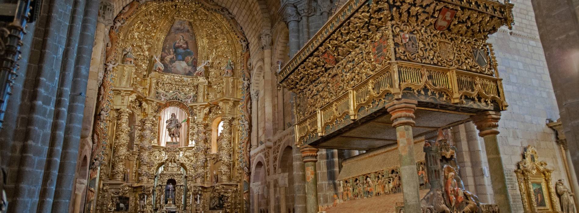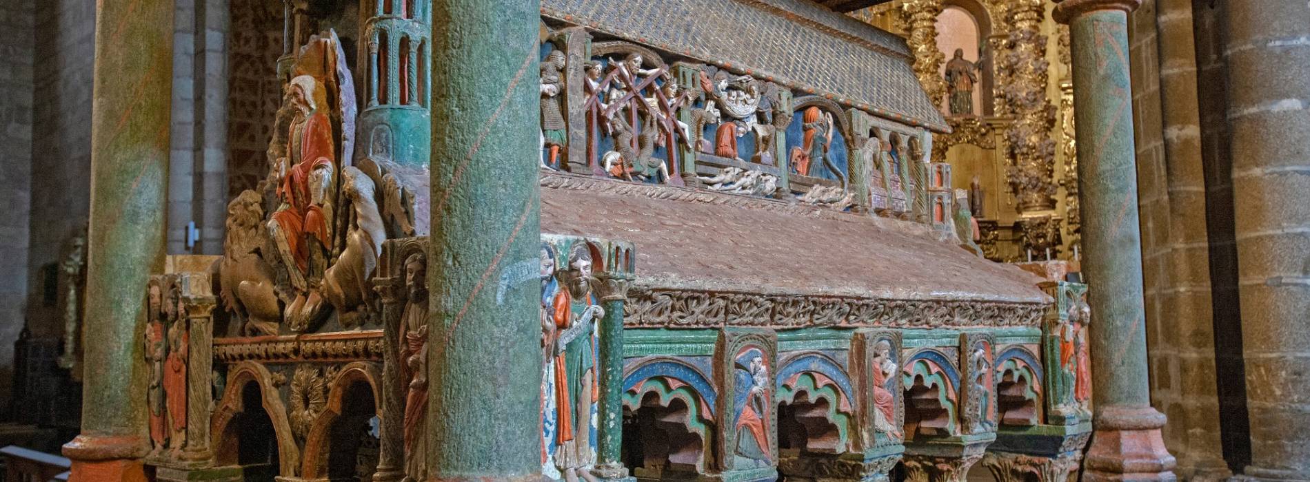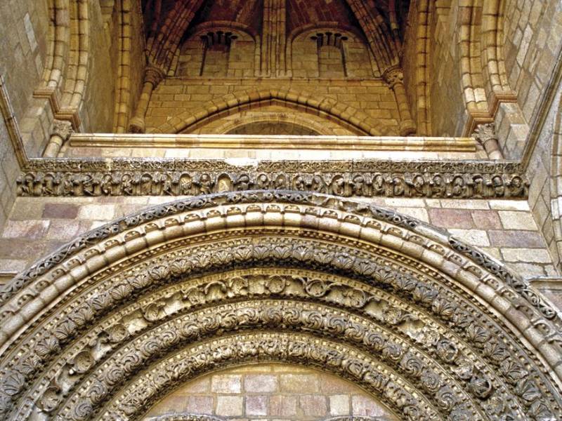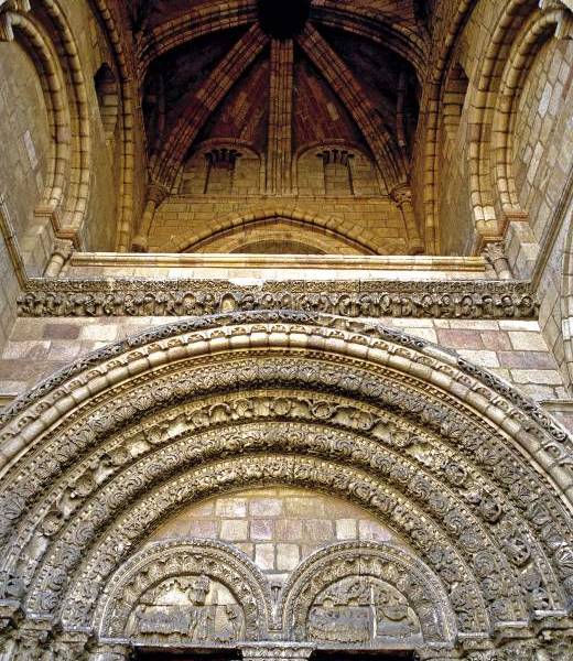Work on the temple began in the 12th century, and it is a clear example of the transition from the Romanesque to the Gothic style. Notable features include the apse, the central vaults and the main portico, also known as the ‘Portico of Glory’, with its elaborately carved archivolts. The triple apse rises up to a great height, crowned by a clearly Gothic dome, with lancet windows on all four sides.