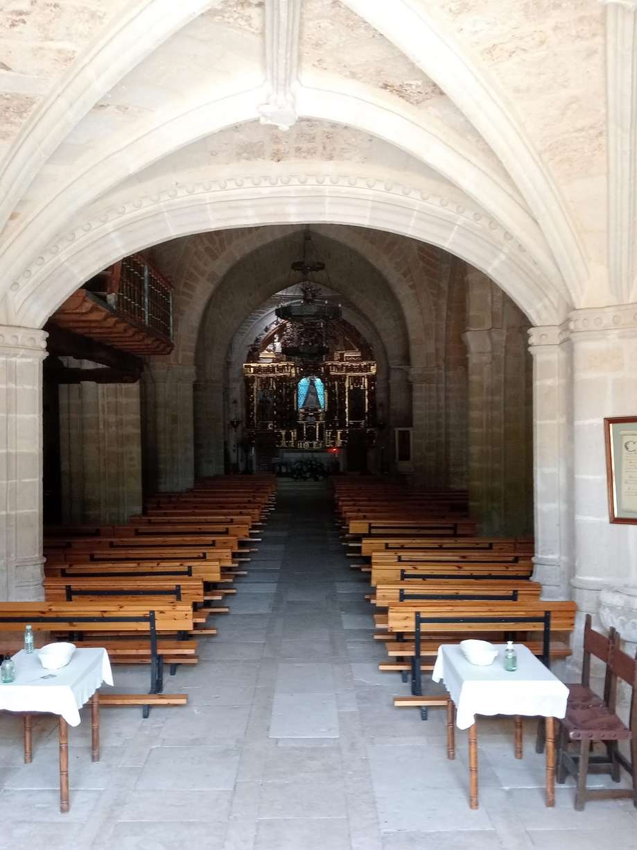 It features the tombstones of the Toba family, dating from the 14th century: the 16th-century Capilla de los Capuchinos; a 17th-century Neo-Classical altarpiece; a Baroque altarpiece in the central chapel dating from the 18th century, which boasts a niche containing a sculpture of Nuestra Señora del Rosario donated by Agustín de Villota; the altarpiece known as 'La Agonía de Jesús' (The Agony of Jesus) dating from the 17th century; the 1170 Baroque organ by Antonio de San Juan; and the tracery work of the choir vaults.