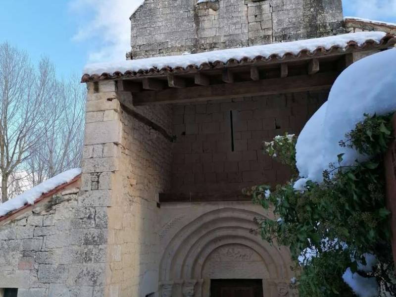It is located in the town of San Miguel de Cornezuelo. It is a Romanesque temple from the 12th century with a single nave, a chancel with a straight presbytery and a semicircular apse made of limestone masonry. The austerity of the exterior contrasts with the interior ornamentation with a beautiful blind archway head and two lines of imposts. The tympanum stands out for a relief that represents the Tree of Life and a warrior fighting against a lion. There are also corbels and capitals where obscene themes, confronted animals and plant motifs stand out.