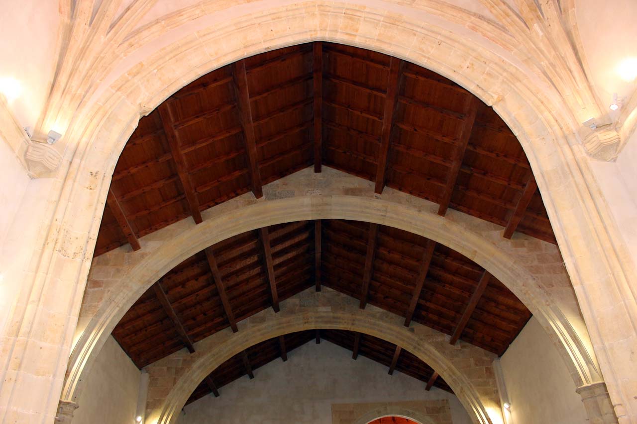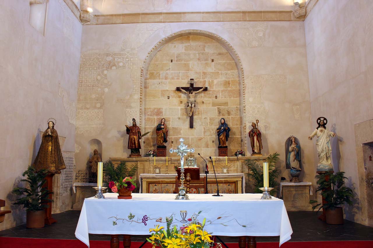 16th century building, with a single nave that is divided into two sections by diaphragm arches that support a simple wooden interior cover. The main chapel, preceded by a pointed triumphal arch, is covered with a starred rib vault.