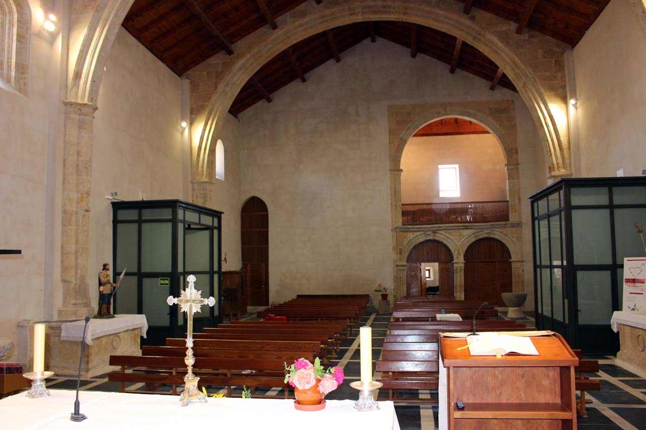 16th century building, with a single nave that is divided into two sections by diaphragm arches that support a simple wooden interior cover. The main chapel, preceded by a pointed triumphal arch, is covered with a starred rib vault.