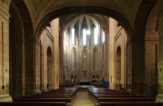 教堂正面顶部是山墙饰。山墙饰条的背景上是天主教君主的盾徽,但山墙饰条的装饰不是哥特式的,而是文艺复兴式的。教堂展现了天主教君主时期的典型结构:一个中殿,内有小教堂和高唱诗班。多立克式正面和上方的阳台至今仍可见。公爵们在弥撒期间坐在阳台上。