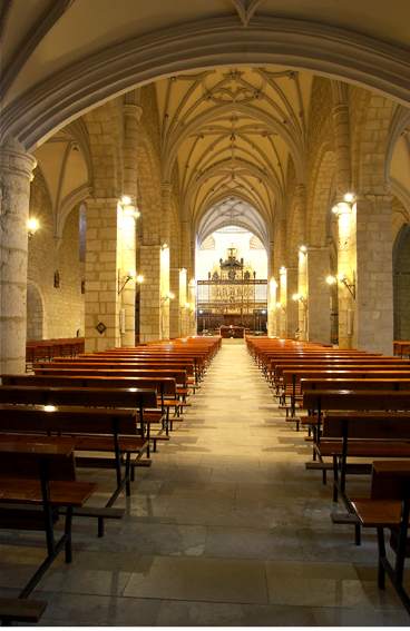 Three large naves separated by compound pillars supporting the central ribbed dome.The apse is part of the mausoleum of the marquises of Poza, whose funerary niches lie in the sidewalls, decorated with praying statues. There is a beautiful altarpiece of the Pieta in the chapel of the Dean Zapata, containing Flemish-Gothic bass-relieves.