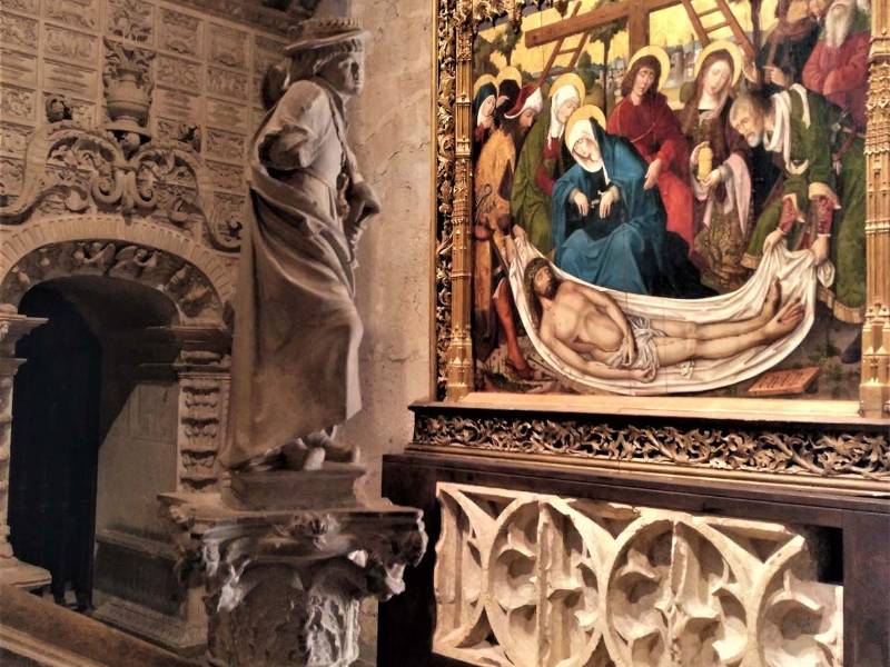 he imposing Chapter Staircase, made by Juan de Badajozel Mozo, serves as the starting point for a tour in which exceptional pieces are displayed. like the Mudejar Wardrobe or the Mozarabic Antiphonary. Along this itinerary, works by renowned artists such as Juan de Juni, Enrique de Arfeo Nicolás Francés coexist with representations of a more popular nature –but not for the least important–. This is the case, for example, of the set of images of the Mother of God that houses the Romanesque Room and that makes up one of the best repertoires of medieval sculpture in the country.