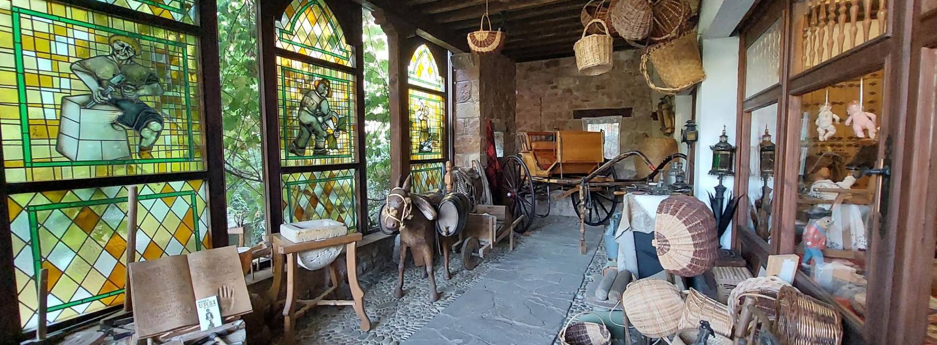 Inside the lower floor, there is kitchen equipment, evidence of the cottage industries, agricultural and livestock farming tools, evidence of the most representative trades of the area, such as carpenter, miner, stonemason, stonecutter, shepherd, shoemaker, basket weaver..., the textile industry with the most important tools used for wool and linen production, traditional decoration and dress.