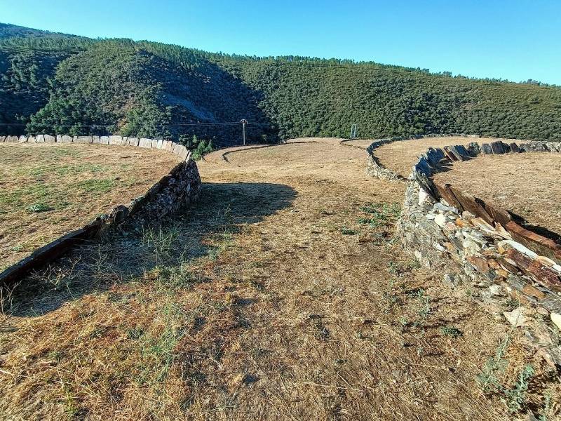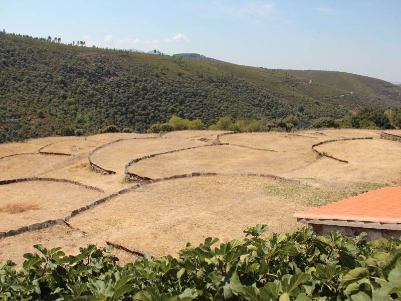 These are about thirty circular threshing floors paved with stone slabs, used for threshing grain, surrounded by dry-stone walls to contain the harvest. They are arranged in terraces, adapting to the terrain's topography, forming a stepped landscape towards the Agadón River with a somewhat " fortified " appearance.