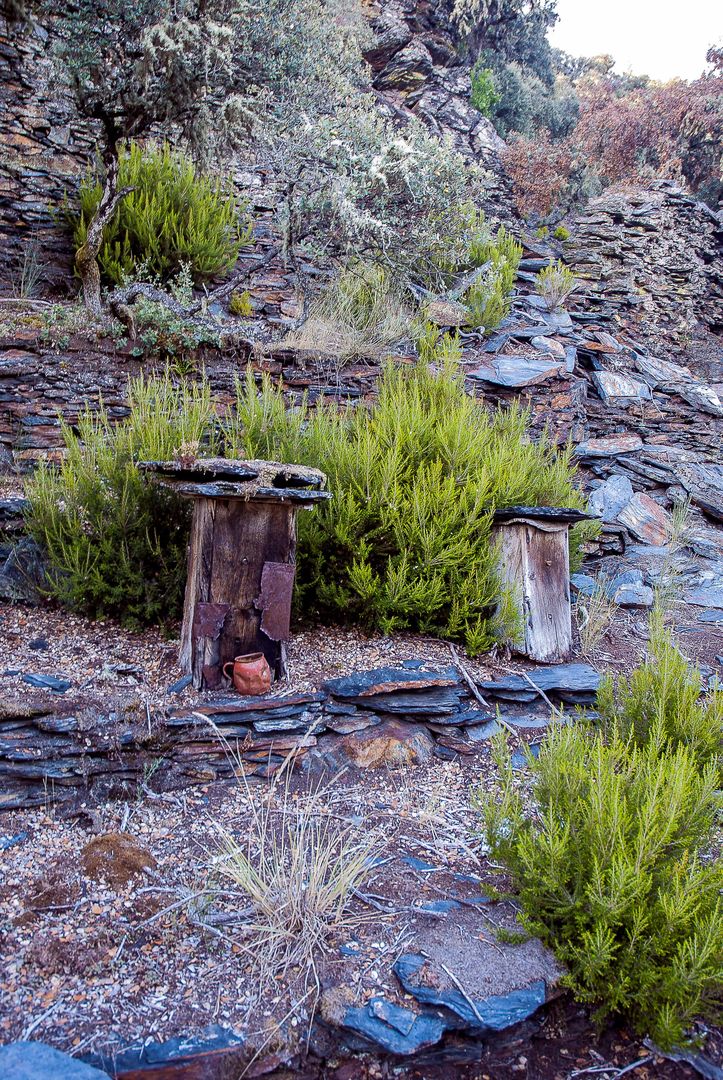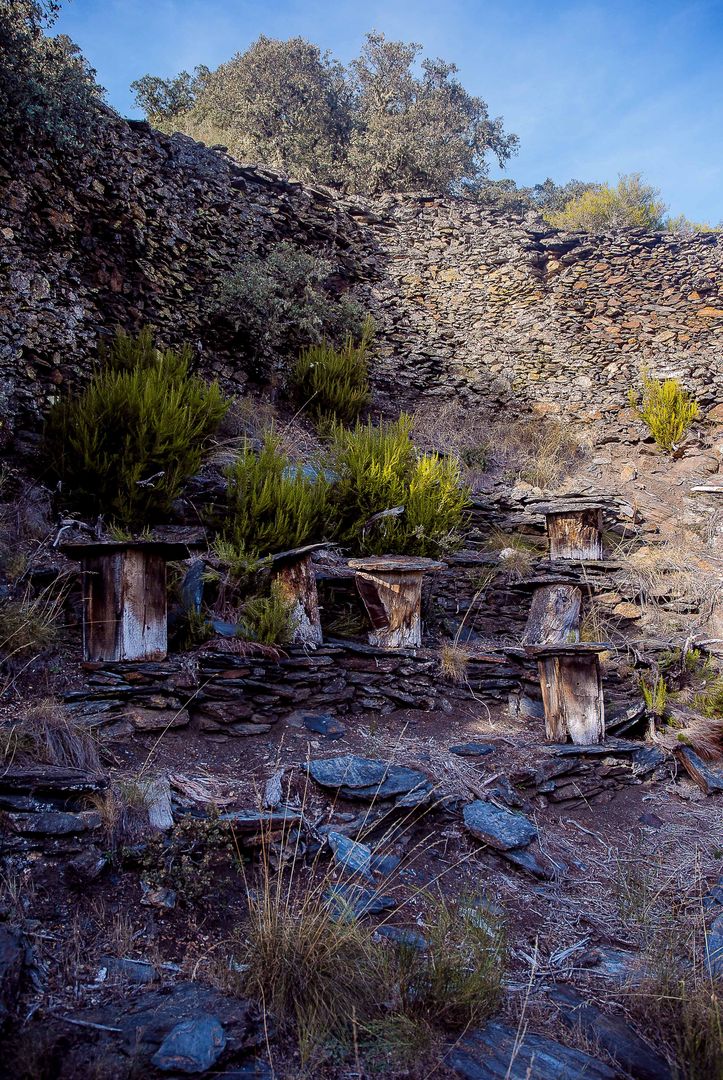 Set of 16 apiaries, located on a very steep slope in the town of Fonfría, Torre del Bierzo Town Hall, adapted to the return or departure flight of bees and sunny, facing south-southeast, quiet, away from farmland and of pasture land where domestic animals could browse, with very close water courses, permanent streams, in a canonical location for this type of construction.