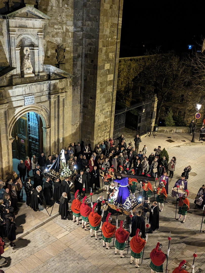 On the morning of Good Friday the fraternity carries its religious images in procession, in accordance with secular convention, to the Basilica de Nuestra Señora de los Milagros to hear the Sermón de las Siete Palabras (the sermon of the seven words), during which the change of the guard is enacted by the roman soldiers who guard the Calvary.