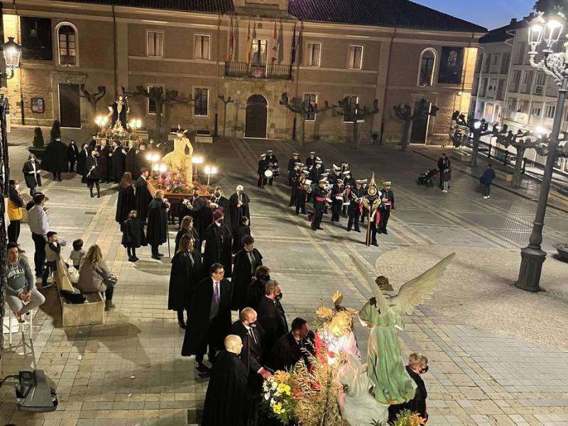 Holy Week in Carrión de los Condes has been recognised in 2025 as a Festival of Tourist Interest in Castilla y León, a declaration that highlights the tradition, devotion and tourist appeal of this religious celebration. With this distinction, the town of Palencia reinforces its position as a prominent destination within the calendar of celebrations. Holy Week in Carrión de los Condes is characterised by its historical roots, the solemnity of its processions and the participation of brotherhoods and residents, who keep alive a tradition passed down from generation to generation. The procession of the Prayer of the Garden is the oldest of Holy Week in Carrión de los Condes. And within the traditions, it stands out when the Brotherhood of the Santa Vera Cruz and the Brotherhood of the Santo Cristo del Amparo, passing by the church of Santa María del Camino, meet in the atrium of the Romanesque church of Santa María between the Virgen Dolorosa and the Santo Cristo del Amparo. At the meeting the song "Save me Virgin Mary" will be sung and the Brotherhood of Cristo del Amparo will make an offering of a bouquet of flowers to the Virgin of Sorrows.