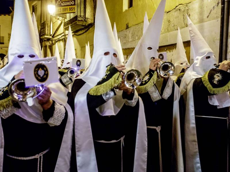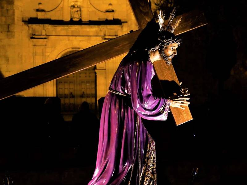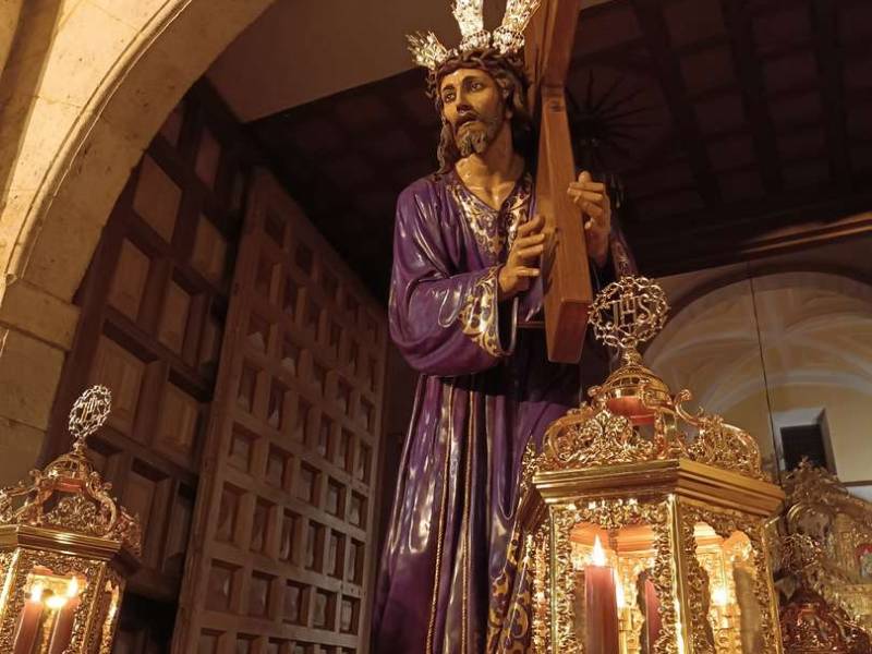 似乎在 16 世纪,圣弗朗西斯科修道院的僧侣们对这些游行最感兴趣,因为除了古老的拿撒勒人像之外,提到的几个台阶都来自该修道院,并在因没收而解散时收集起来,要么在附近的圣克拉拉修道院(基督被绑在柱子上,拿撒勒人,晚餐,亲吻),要么在圣玛丽亚教区(多洛罗萨)。然而,圣胡安和圣巴勃罗修道院(今天的圣巴勃罗)的多米尼加人也紧随其后,因为他们在 16 世纪下半叶或 17 世纪初同时委托制作了卧姿基督像,也许还有一点索莱达,这是一幅礼服像,在耶稣受难日庄严地结束受难游行。