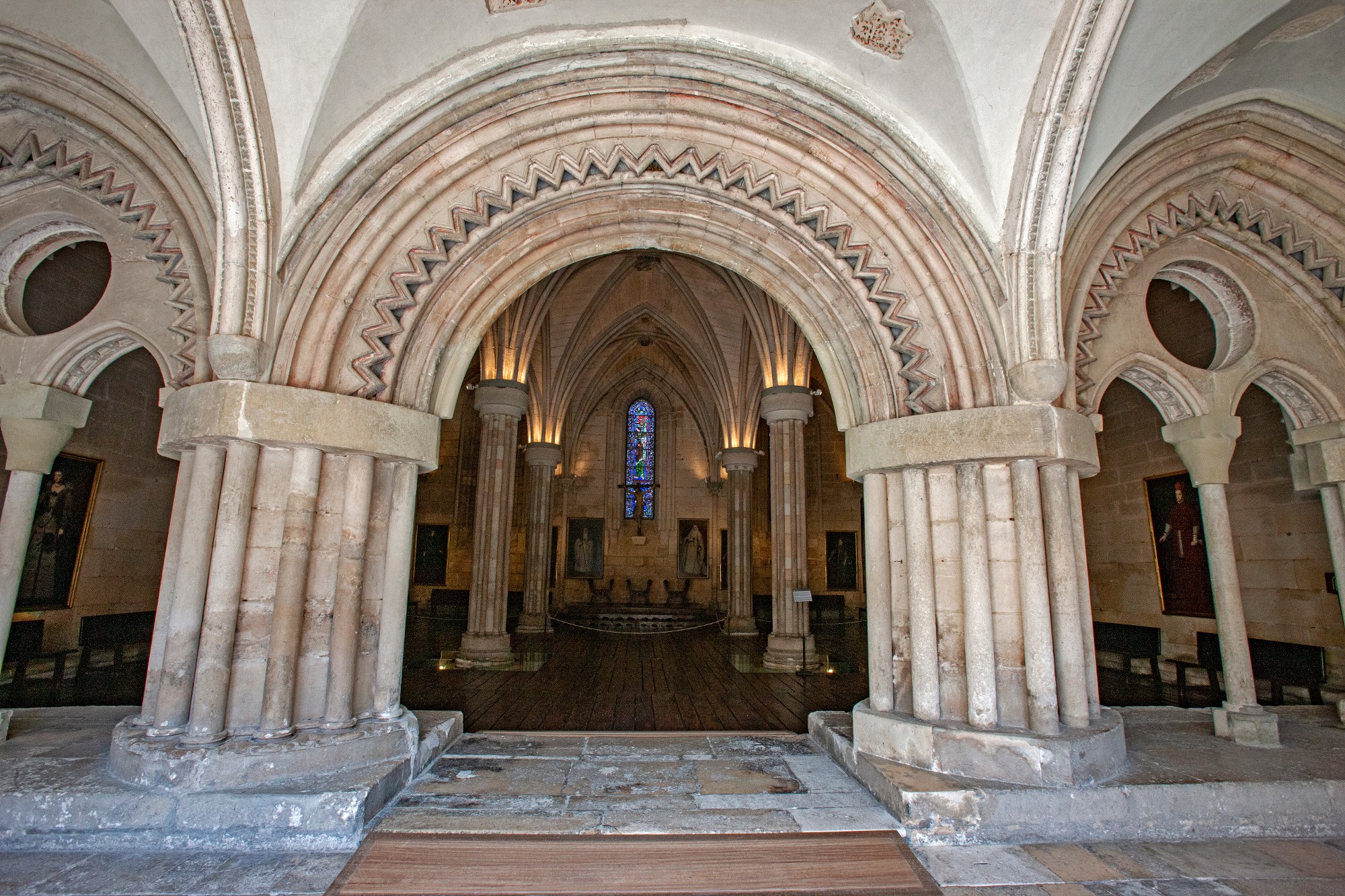 The exterior of the Monastery shows its strong defensive tower and remains of the walled enclosure. Surrounded by a crenellated wall, the monastery has a Romanesque and Gothic design.
