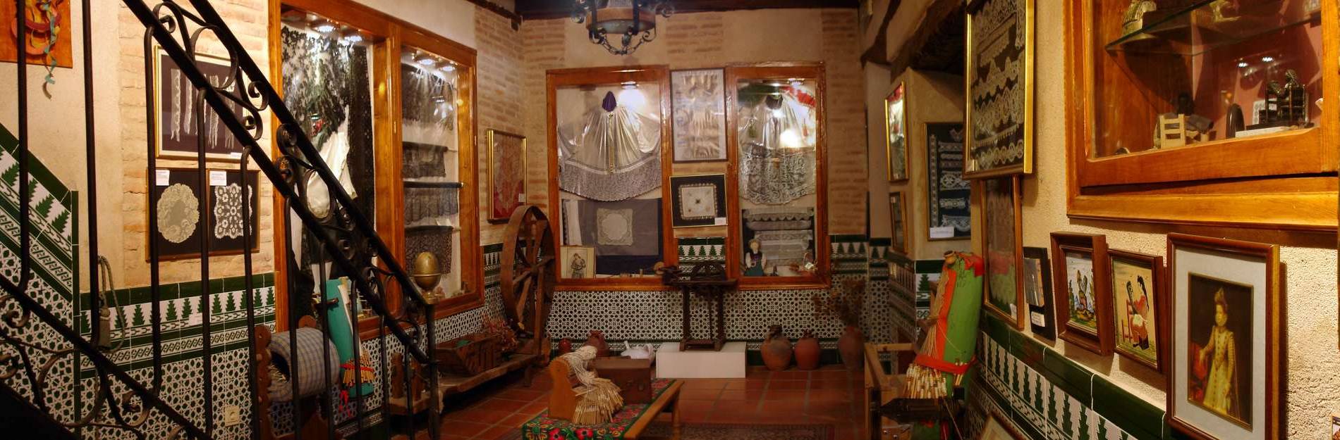 The museum has five rooms open to the public in which a part of the collection is displayed, with a representation of scholar and popular laces, mainly produced in the region. It is complemented with pieces or works of other countries, as well as other times utensils for processing textiles. Pieces of lace and embroidery, clothing, liturgical pieces, ritual cloths, household furnishings, etc are exposed.