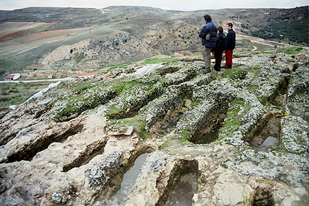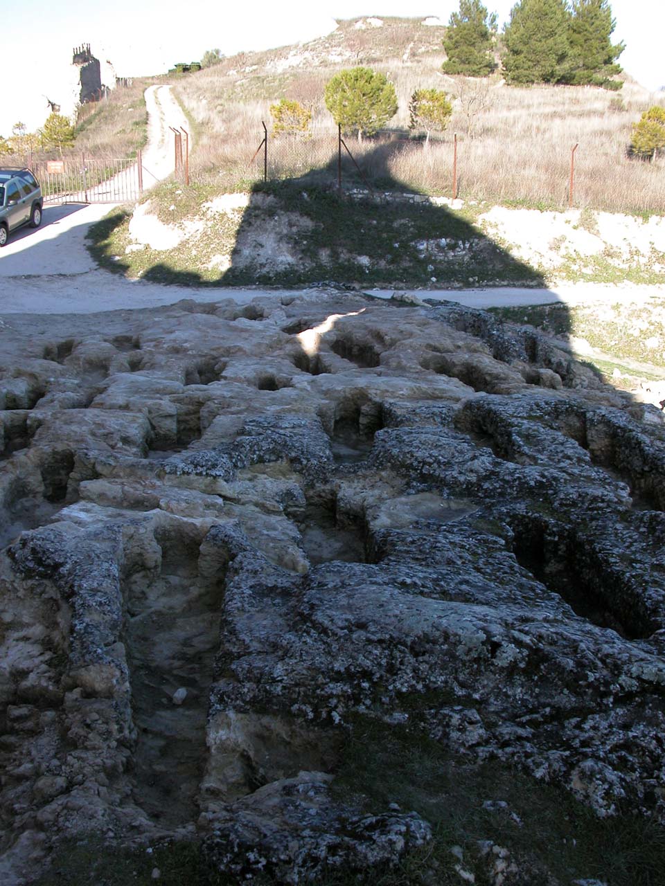 Atop the hill overlooking the village of Fuentidueña, near the ruins of the church of San Martin, a former early medieval cemetery retains about a hundred tombs carved into the rock, of anthropomorphic shape.