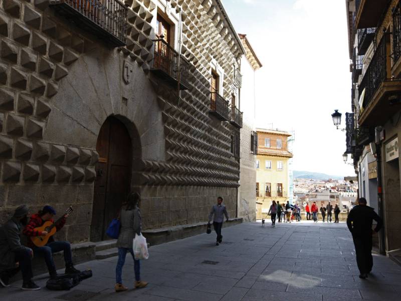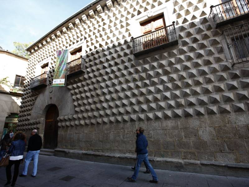 The building belonged to Juan de la Hoz who added to the renaissance facade the diamond shaped turrets to change the character of the house that was known as the casa del judio (the jews house) or the casa del verdugo (the hangmans house).
