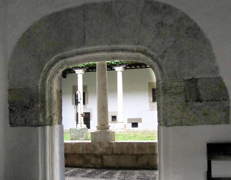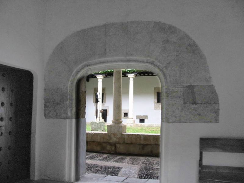 On the façade the most impressive artefact is the main shield framed on either side by a part of the surround delimited by two semi-columns supporting resting lions. The courtyard is austere in comparison and has a trabeated Tuscan gallery on the lower floor.