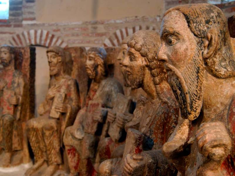 Its jewel is the apostolate, thirteen seated sculptures made of polychrome stone and placed in a semicircle in the main chapel, dated around the year 1,200.