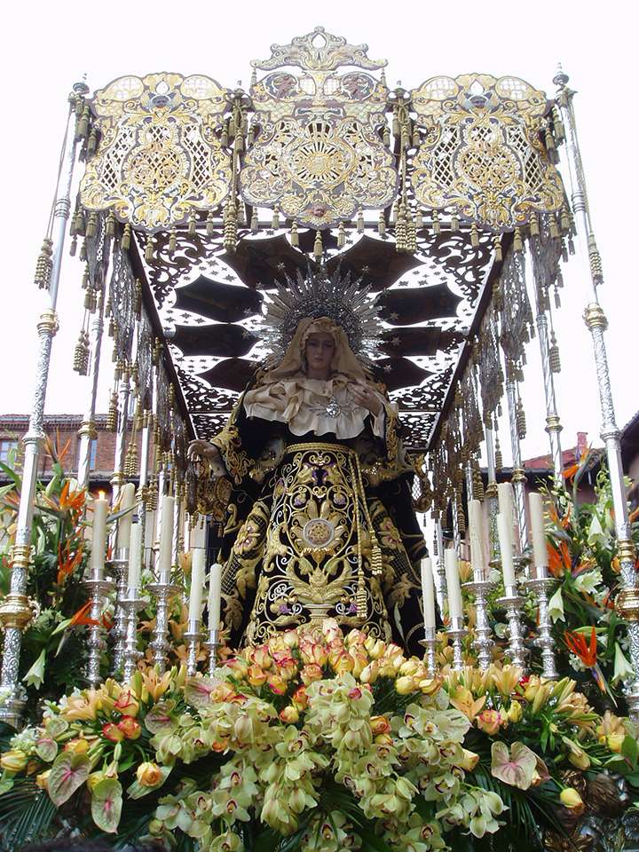 The steps that participate in this procession, also formerly known as "Calvary" are: the Prayer in the Garden (Víctor de los Ríos, 1952), the Arrest (Ángel Estrada, 1964), the Flagellation (attributed to Gaspar Becerra, s XVI), the Crowning of Thorns (Higinio Vázquez, 1977), the Ecce Homo (series, 1905), Ntro. Father Jesús Nazareno (Castilian school, 17th century), the Verónica (Francisco de Pablo, 1926), the Despiolio (Díez de Tudanca, 1675), The Exaltation of the Cross (Navarro Arteaga, 2000), the Crucifixion, (serial, 1908), Stmo. Christ of Agony (Laureano Villanueva, 1973), Saint John (Víctor de los Ríos, 1946) and closing the procession, the Sorrowful Mother (Víctor de los Ríos, 1949), all of them carried on the shoulders of the brothers of the Brotherhood.