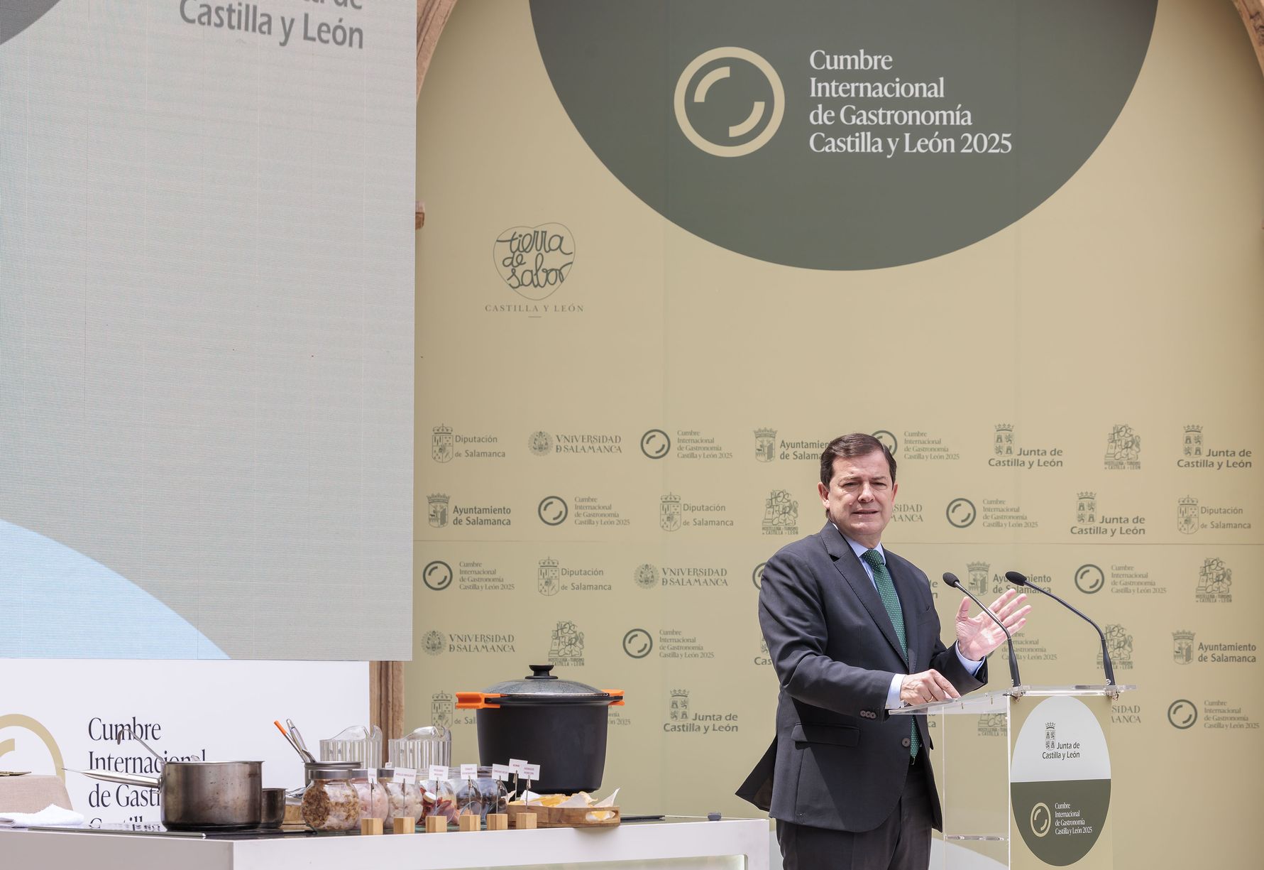 The President of the Junta de Castilla y León, Alfonso Fernández Mañueco, participated in the 1st International Gastronomy Summit of Castilla y León 2025, "A Monumental Cuisine," organized by the regional government. He praised the potential of the region's gastronomy, a benchmark for quality and a key element in its international projection.