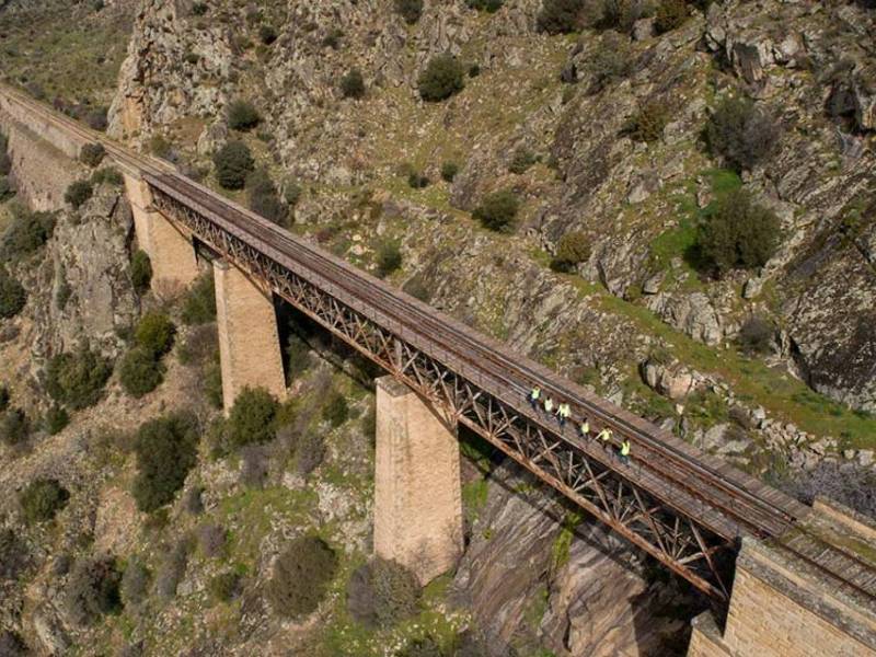 The milestone of 19th century civil engineering is today one of the most captivating hiking routes, running through an extraordinarily beautiful landscape full of contrasts. Following the route of what was the Duero railway, the winding path makes its way with ten bridges and twenty tunnels through the heart of Las Arribes in a natural setting of extremely high ecological value. Ideal to explore in spring, the spectacular nature and value of this industrial jewel lies mainly in the technical solutions that were necessary to implement to adapt the railway route to the rugged geography, where the river borders with Portugal.