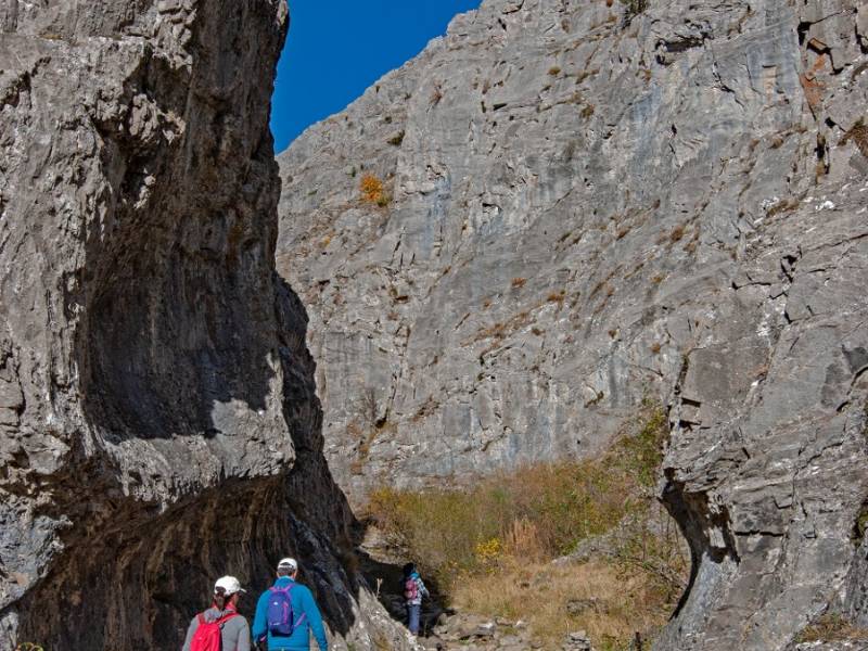 The route takes place on the river bed, the summer time being the ideal time to do it as that is when the waters continue their course underground. Master class in open-air geology, its capricious shapes and chromatic games fascinate equally, until reaching the mountain passes of the central massif of the Cantabrian Mountains used for centuries by transhumance.