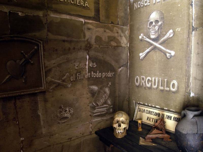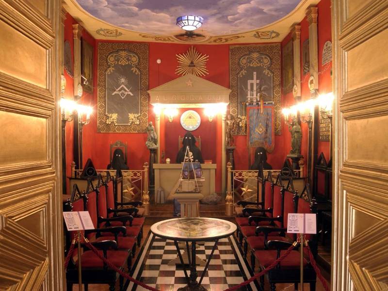 La sala es una recreación de una logia masónica dentro del Archivo Histórico Nacional. Los fondos corresponden a objetos incautados a la masonería durante la guerra civil de 1936 a 1939.