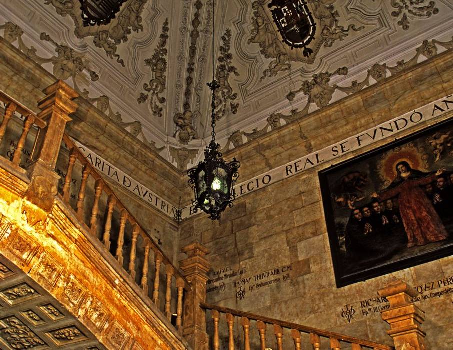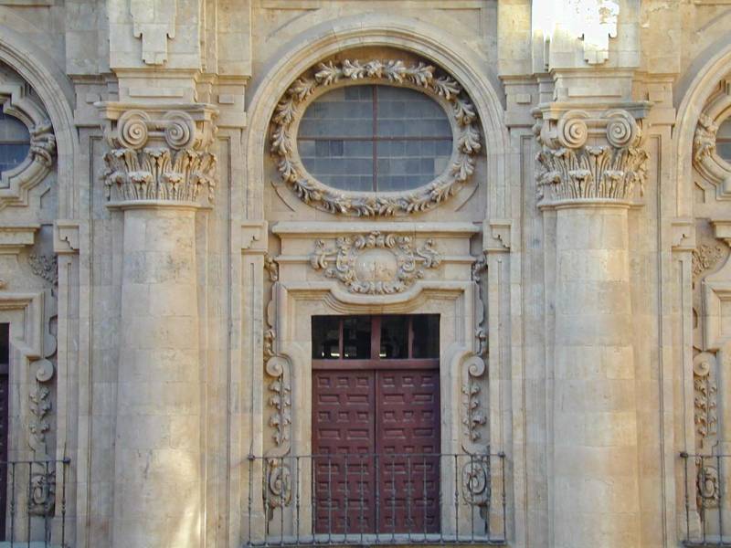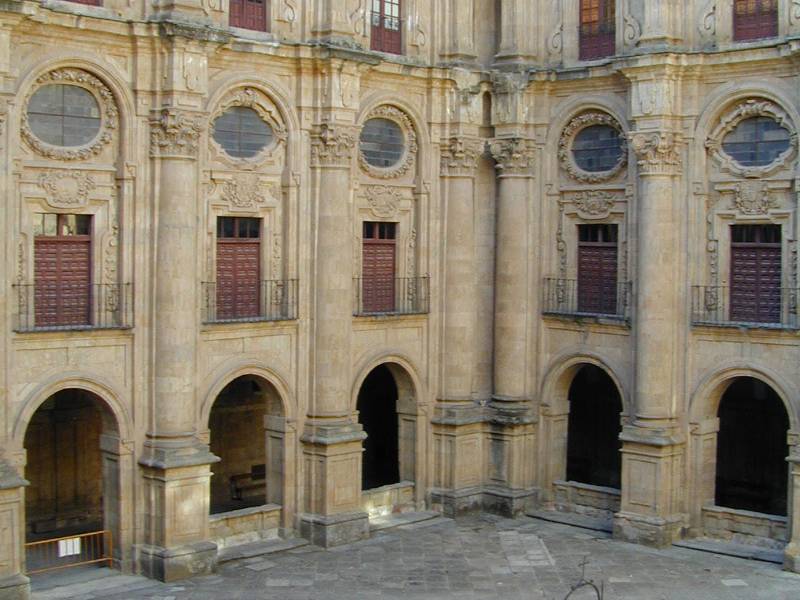 La universidad privada católica de Salamanca se ubica desde 1940 en lo que fue el Real Colegio de la Compañía de Jesús, fundado por la reina Margarita de Austria, esposa de Felipe III en 1611. Este monumental edificio ocupa una vasta extensión de terreno, ya que para su construcción varias manzanas de casas, algún palacio y alguna iglesia debieron ser destruidas. Se colocó la primera piedra el 12 de noviembre de 1617, encargando el rey los planos al gran arquitecto Juan Gómez de Mora. Todo el conjunto presenta una planta en forma de U, en la que los lados largos son los pabellones, coronados por sus características galerías. Destaca el magnífico Claustro de Estudios, realizado en el siglo XVIII por Andrés García de Quiñones, que empleó para su diseño el orden gigante de columnas y la alternancia entre vanos geométricos y otros ovalados orlados por coronas de carnosa vegetación.