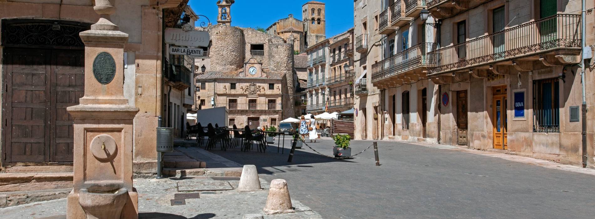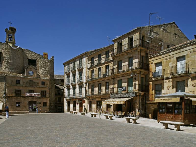 Découvrez son château, ses murailles, son quartier juif, son environnement urbain pittoresque plein de bâtiments blasonnés et les églises de Saints Justo et Pastor - Museo de los Fueros, San Bartolomé, El Salvador, Nuestra Señora La Virgen de la Peña et Santiago, qui abrite la maison du parc Hoces del Río Duratón.