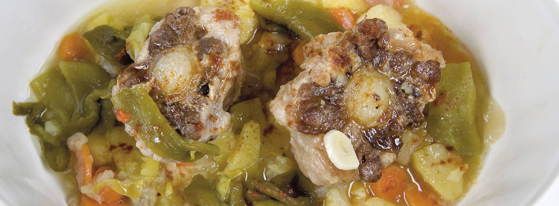 Calentar el aceite, añadir el rabo troceado, salpimentarle y rehogarle a fuego fuerte unos diez minutos sin dejar de removerle. Añadir todas las verduras picadas y seguir rehogándole unos quince minutos removiéndolo de vez en cuando. Añadir la guindilla. Añadir el brandy y el vino tinto y rehogarlo cinco minutos. Añadir el caldo de carne (o en su defecto agua) y hervirlo a fuego lento una hora aproximadamente hasta que al pincharlo con un tenedor la carne esté tierna.