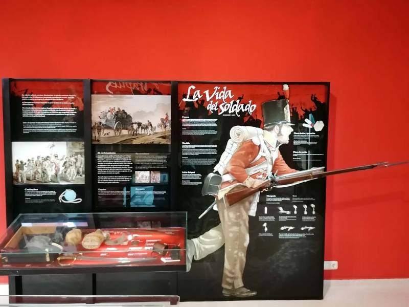 Además de un audiovisual, el aula cuenta con llamativos paneles, reproducciones de armas de la época y varias maquetas. La más grande de estas maquetas impresiona: de más de 5 metros de longitud, alberga 5.200 figuras de poco más de 1 centímetro de altura, representando con total fidelidad uno de los momentos clave de la batalla.