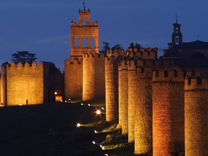 Subida a la Muralla de ÁvilaMás informaciónCon 2.516 metros de perímetro, esta espectacular muralla se hizo con fines defensivos, aprovechando restos de viejas edificaciones romanas y estelas funerarias. La muralla actual fue aparentemente erigida...