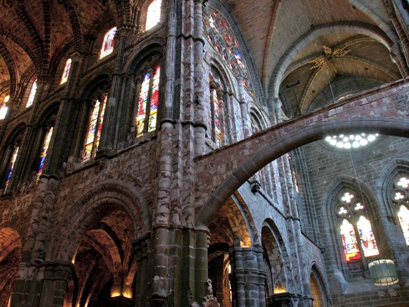 En los templos románicos se utilizó un material más dócil para la filigrana escultórica, la denominada ‘piedra caleña’, que caracterizará al románico abulense. Adosado intramuros a la muralla, encontramos El Episcopio, el edificio civil más antiguo de la ciudad. Enfrente, la Catedral, proyectada como templo y fortaleza y considerada la primera catedral gótica de España.