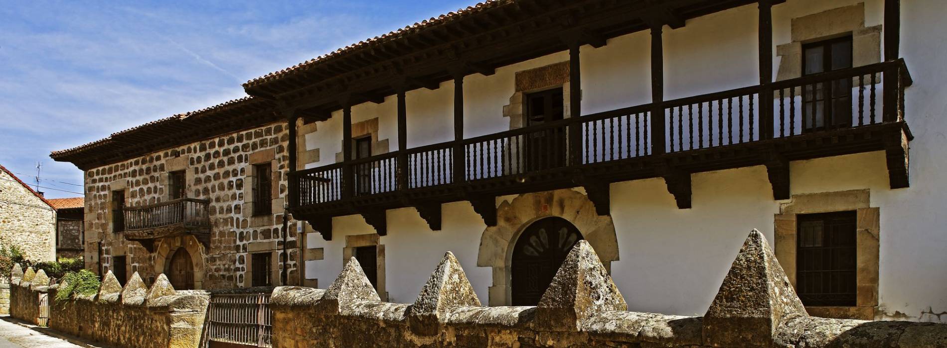 Casona con balcones de madera, fachada labrada en piedra de sillería y puerta en arco construida en 1778 siguiendo la traza típica de la vivienda de la zona, en dos plantas rectangulares con la distribución de las dependencias desde un zaguán.
