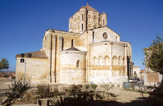 Iglesia de estilo románico-gótico. Su construcción se llevó a cabo desde el último tercio del siglo XII (alrededor de 1170), en tiempos del reinado de Fernando II de León, hasta bien entrado el XIII. Posee tres naves y crucero rematado por un cimborrio, y su portada septentrional es una de las más notables aportaciones del románico de los siglos XII y XIII.