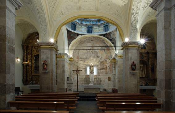 Iglesia de construcción barroca de tres naves y cúpula semiesférica en el crucero que conserva la cabecera románica del siglo XII y el cuerpo restante del templo actual construido entre 1696 y 1702 con planos del arquitecto Fray Jerónimo de la Cuadra y ejecución del maestro Antonio de la Torre.