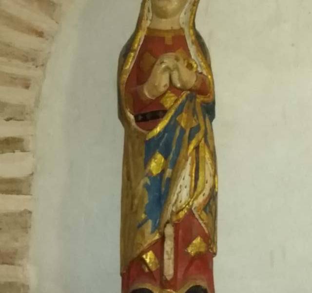Pequeña iglesia románico-mudéjar de fines del XII con una nave central y una colateral a su derecha comunicadas por tres arcos de medio punto peraltados con triple arquivolta. El ábside del interior está en buen estado y es muy similar al de la Iglesia de Santiago en Alba de Tormes, en el exterior sólo se conserva la base y el muro, con seis arcos dobles.