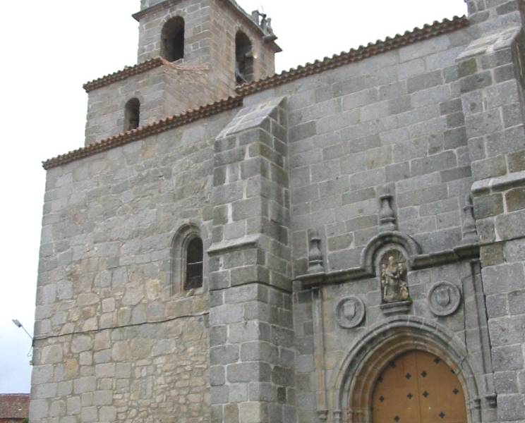 Esta monumental iglesia comenzó a construirse en el siglo XV y es toda ella de sillería granítica. Tres alturas se marcan por el exterior, y que de más a menos son la capilla mayor, la parte tangente a ella y la de los pies. Tanto el tramo antepresbiterial como la capilla mayor se cubren con una compleja bóveda estrellada de gran altura e idéntico diseño a la de La Fregeneda. Esta obra pudo deberse al círculo del cantero Pedro de Ibarra. En el exterior sobresale ante todo la torre y destaca la austeridad de limpieza de volúmenes, con monumentales contrafuertes.