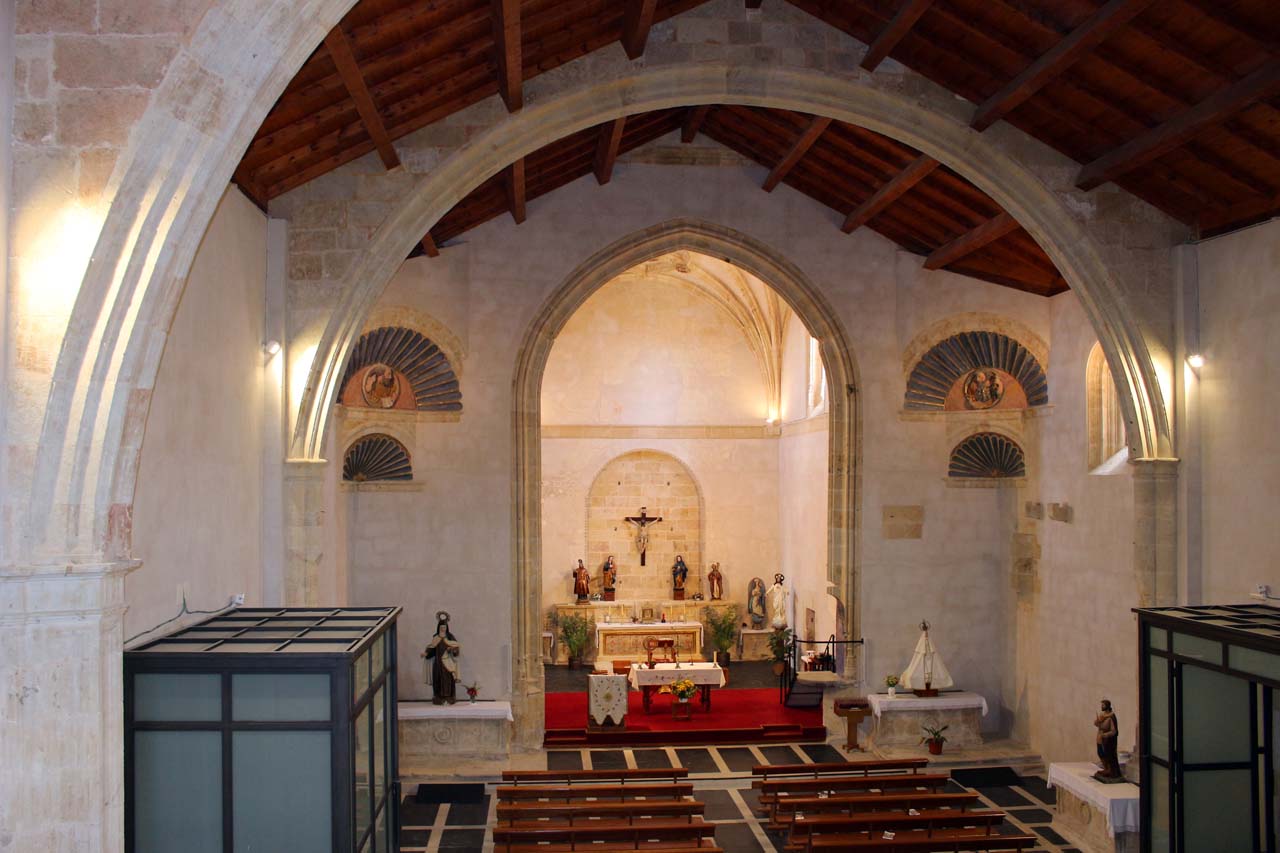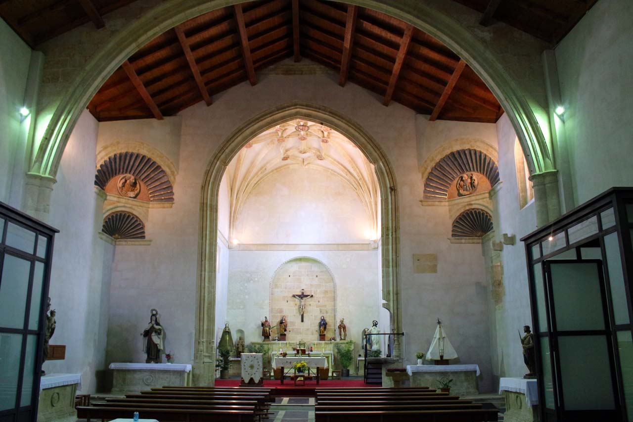 Edificio del siglo XVI, de una sola nave que está dividida en dos tramos por arcos diafragma que sostienen una sencilla cubierta interior de madera. La capilla mayor, precedida de arco triunfal apuntado, se cubre con bóveda de crucería estrellada.