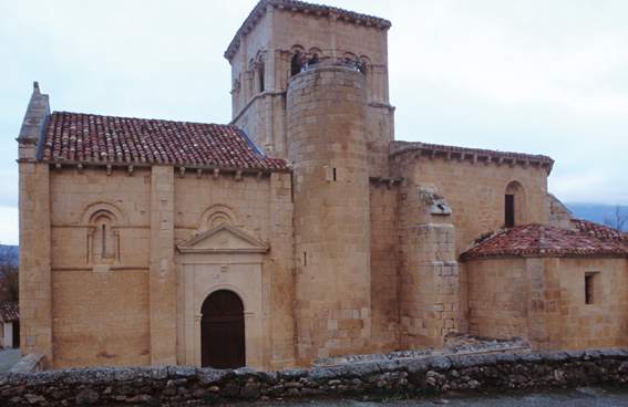 Iglesia del siglo XII, presenta una planta parecida a la de San Pedro de Tejada, pero desfigurada por la sustitución del ábside del XV y las capillas del siglo XVI.