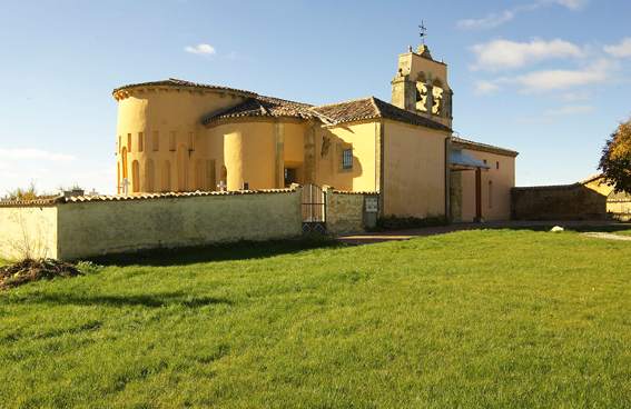 La portada es una de las más completas, de arquivoltas iconográficas de músicos o profetas, de forma radiada que recuerdan a Sta. Mª de Carrión. La talla de la portada es angulosa y profunda. Se conserva el Arco Toral con dos capiteles altos de acantos con bola y leones o monstruos con las patas apoyadas en el collarino.