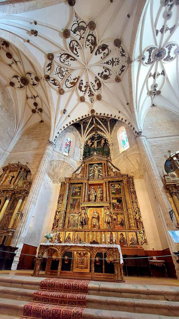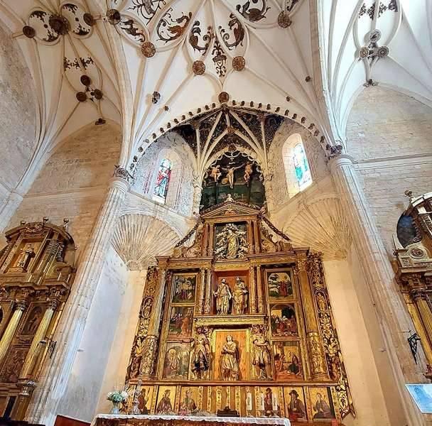 La torre que conserva restos románicos, es de seis cuerpos y remata con una pirámide cubierta de azulejería, y el Retablo Mayor es renacentista, con restos de otro anterior. Cuenta con doce tablas pintadas, cuatro esculturas y un calvario. Las doce tablas fueron pintadas por Pedro Berruguete, tres esculturas de Esteban Jordán y una Anunciación de Inocencio Berruguete.