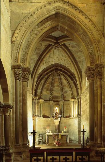 Su fundación inicial, en el S. XII se debe al conde Fruela, cuñado del Cid. Fue regida como Colegiata y Hospedería por agustinos regulares. El declive la redujo a simple parroquia, siendo restaurada tras la guerra civil. El edificio es de finos sillares de arenisca gris. La capilla gótica es posterior, del siglo XII, y del siglo XVII son la sacristía, la torre, el pórtico y el abovedamiento de la nave central.
