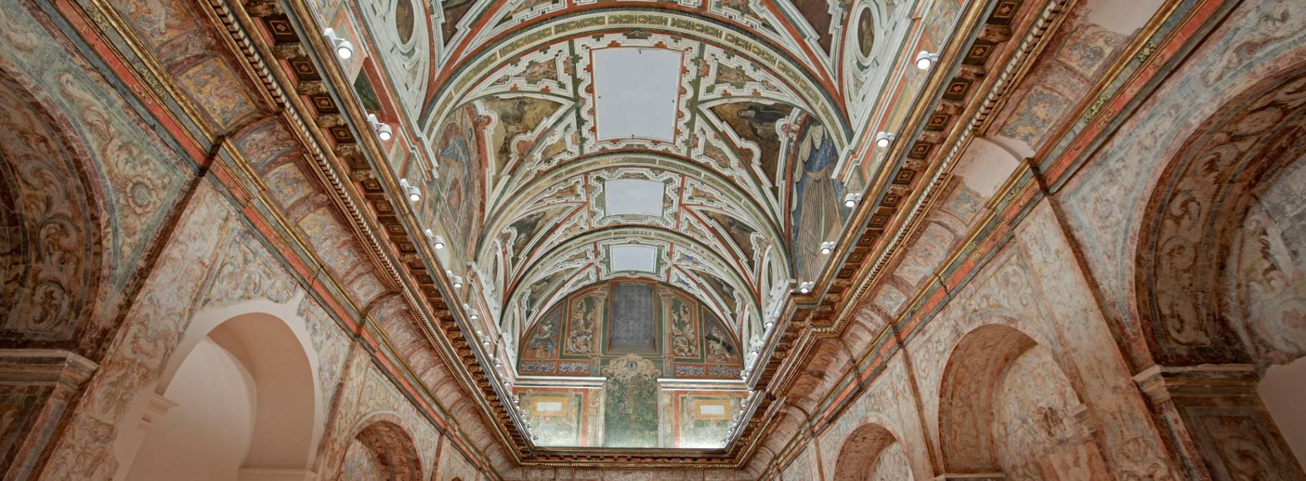 Lo más antiguo es la iglesia de la época de los Reyes Católicos, restaurado en el siglo XVII. El edificio tiene tres claustros, la sacristía es rectangular y en la parte superior hay una pasarela que permite el acceso a las bóvedas decoradas con yeserías policromadas y pinturas.