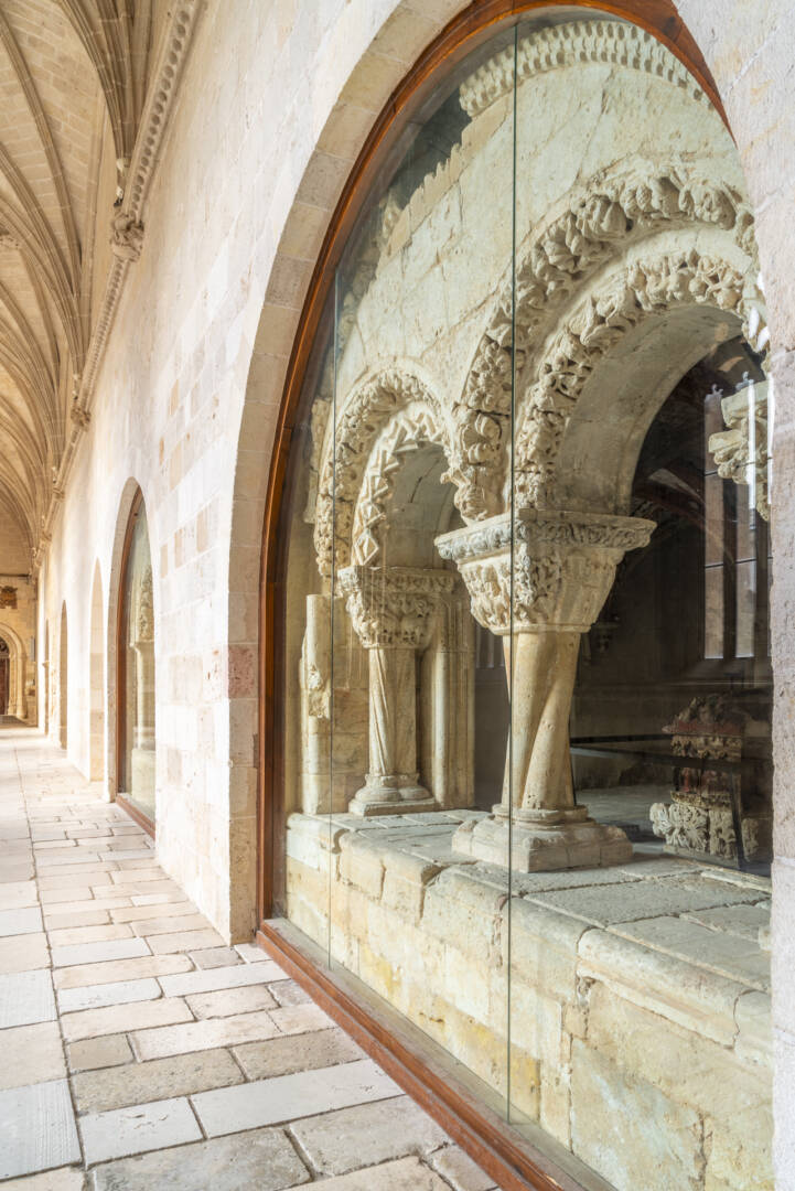 Sobre la primera Catedral románica del siglo XII, de la que se conservan arcos con fustes torsos, se construyó la Catedral gótica en los siglos XIII y XIV.