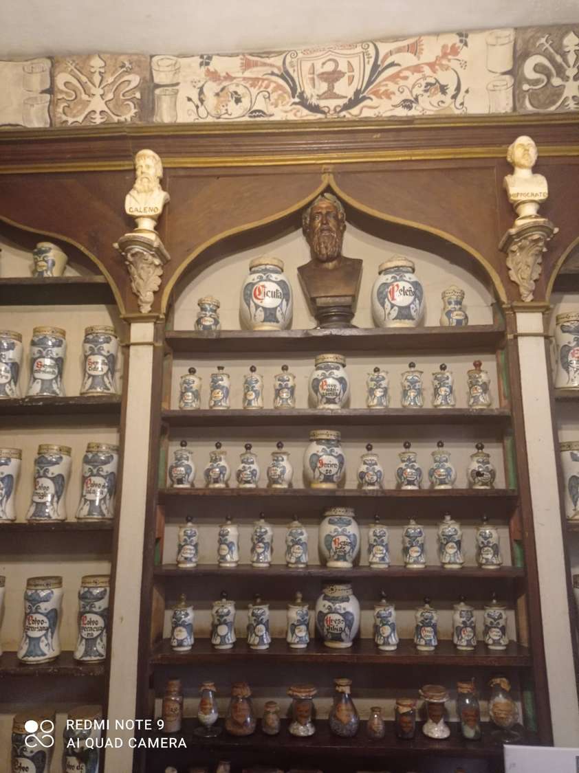 Posee una colección de tarros de cerámica, piezas de vidrio, medicamentos hoy exóticos, la rebotica, el laboratorio y un pequeño jardín, antiguo huerto de cultivo de plantas medicinales.