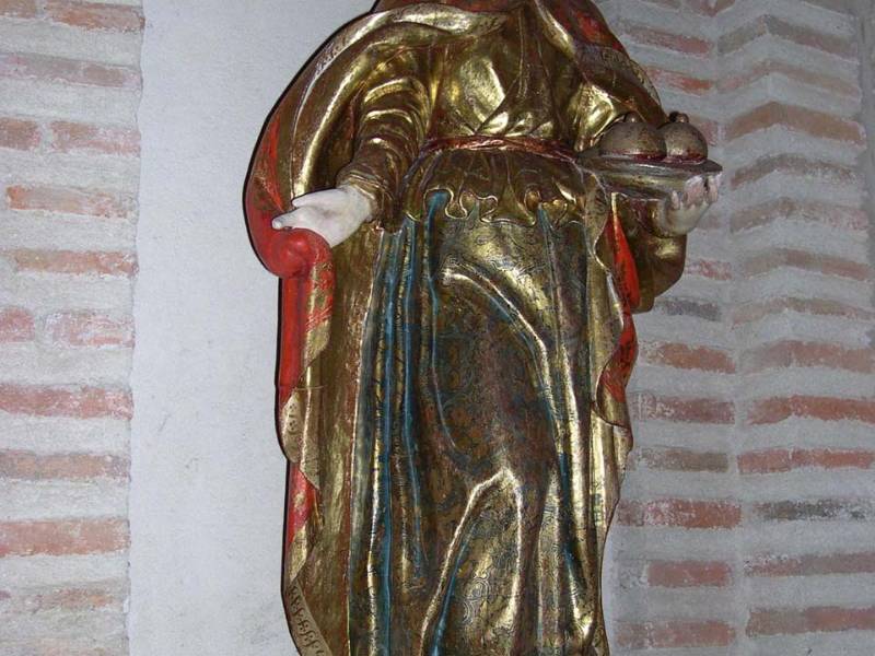 Su joya es el apostolado, trece esculturas sedentes realizadas en piedra policromada y colocadas en semicírculo en la capilla mayor, datadas en torno al año 1.200.