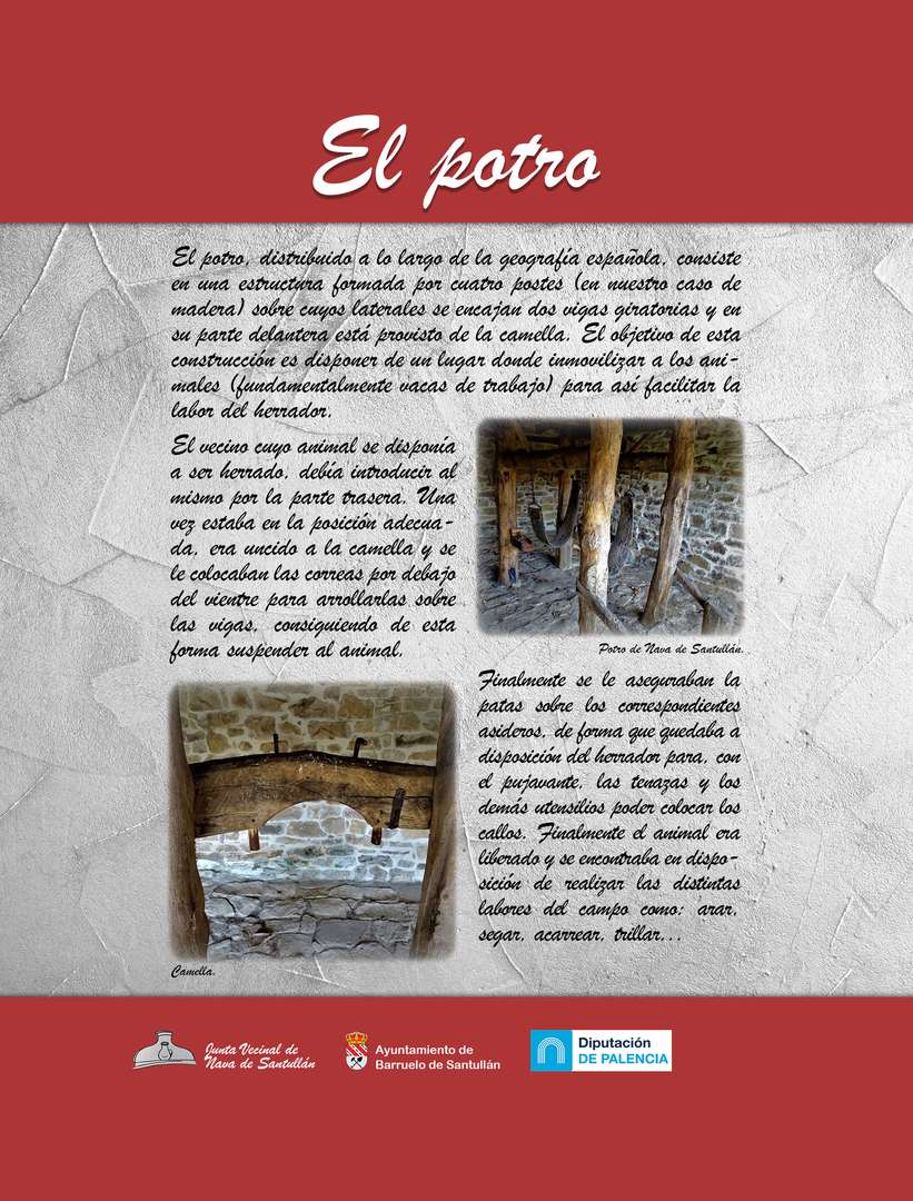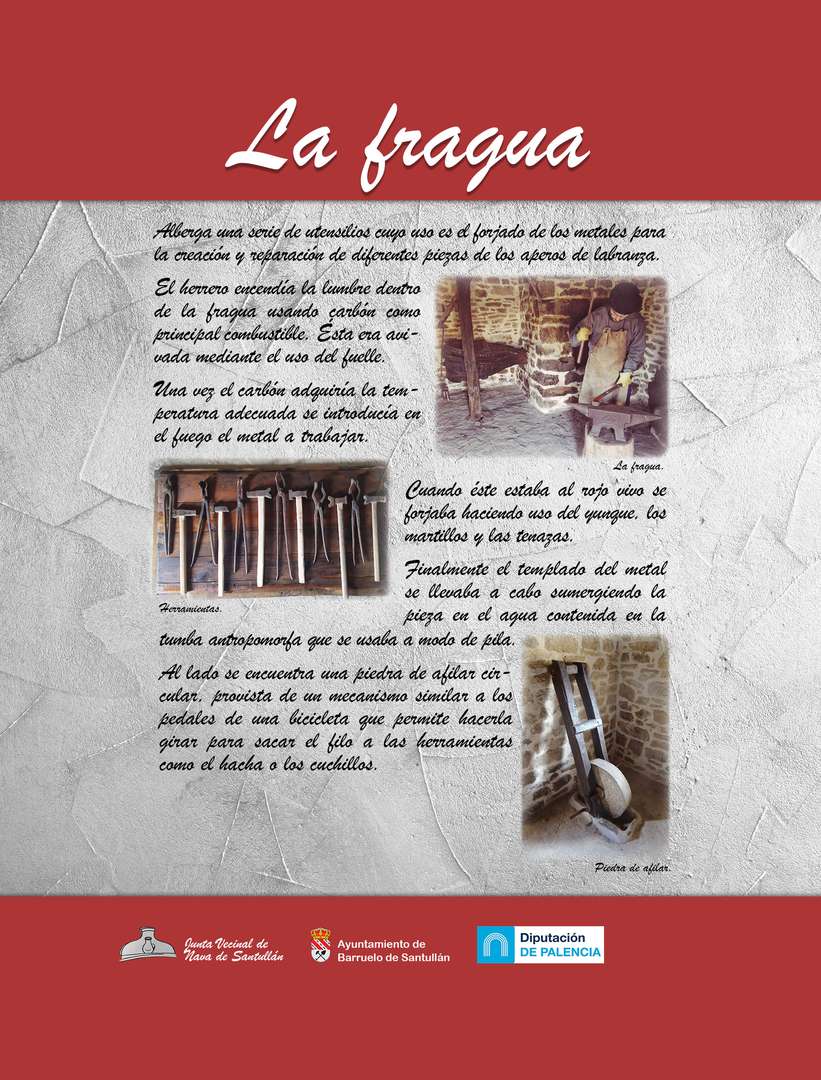 En la localidad de Nava de Santullán (Palencia), los vecinos han restaurado y recuperado un conjunto de construcciones y edificios que servían para la realización de las actividades tradicionales, entre las que se encuentran: la fragua, el potro, la antigua escuela y los lavaderos.